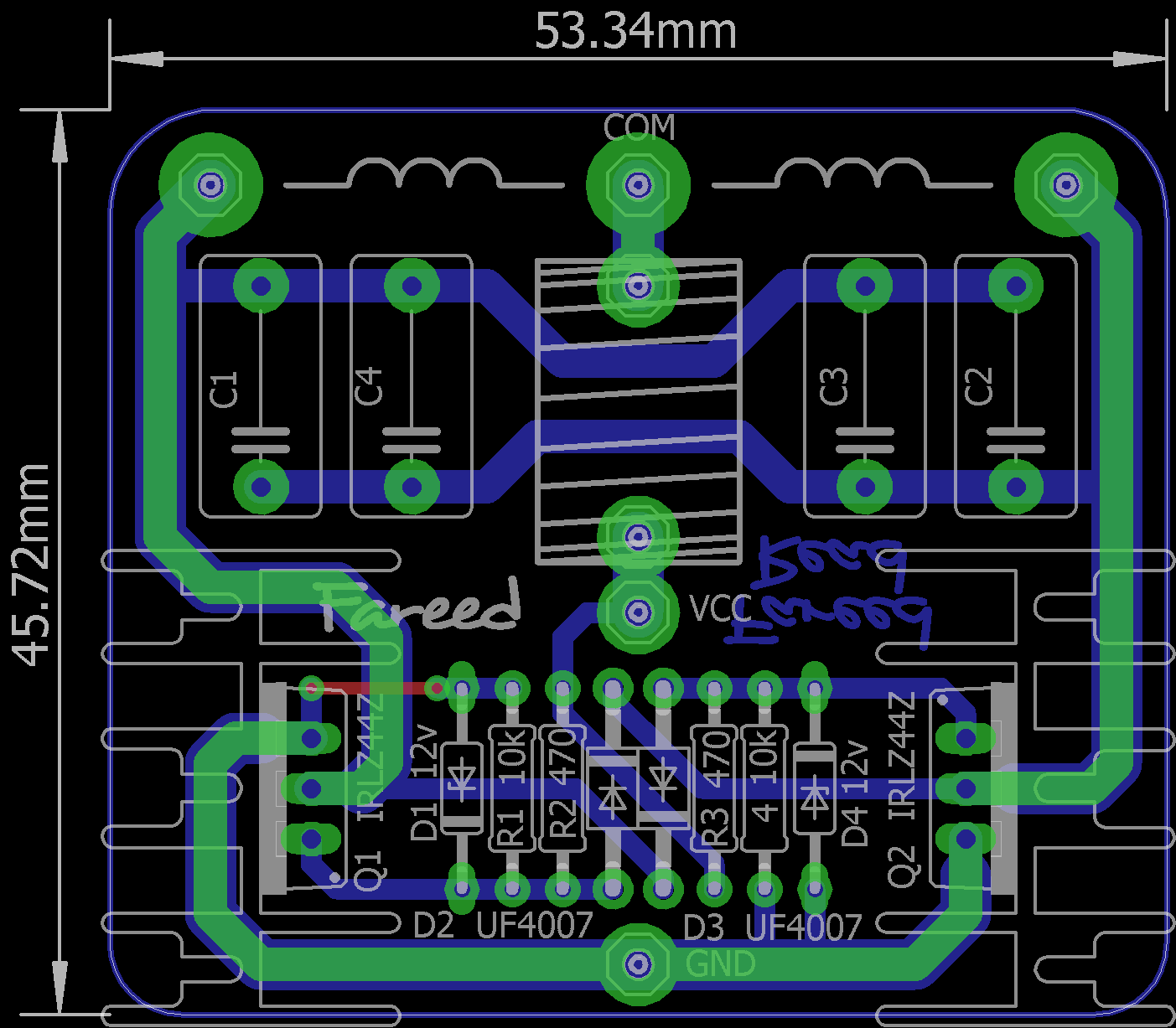 File layout di atas untuk tegangan 67dc, jika menggunakan tegangan berbeda resistor harap sesuaikan, nilai ohm/volt 88ohm, silakan sesuaikan sendiri nilai resistor 6K8 pada layout di atas